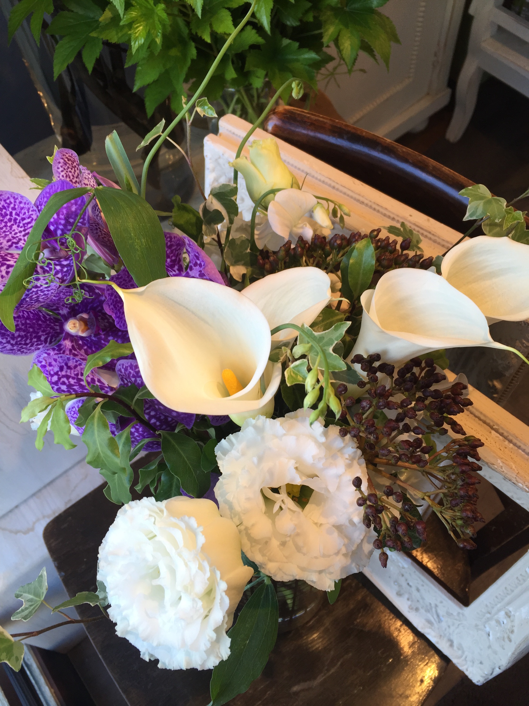 快気祝😊🎀 投稿日: 2016-03-09 投稿者: eclatflower こんにちは🍀 昨日の暖かさとは一変、 松本は雪になっています❄️❄️ 今日は 快気祝のアレンジメントの ご注文をいただきました😊✨ 白とグリーンでナチュラルな雰囲気をご希望🍀 お着物が お好きな方という事で、 少し和風な花を選んでみました😊 コチョウランを中心に、 本日入荷した素敵な ダリア。 フリージア もつぼみなので咲くのが楽しみですね🎶 実物でシキミア、 麦、 そして 春を感じられる 🌸桜🌸 お客様からのメッセージも添えて✨✨ 早く お元気に なっていただけますように……😊 ご注文ありがとうございました🎶
