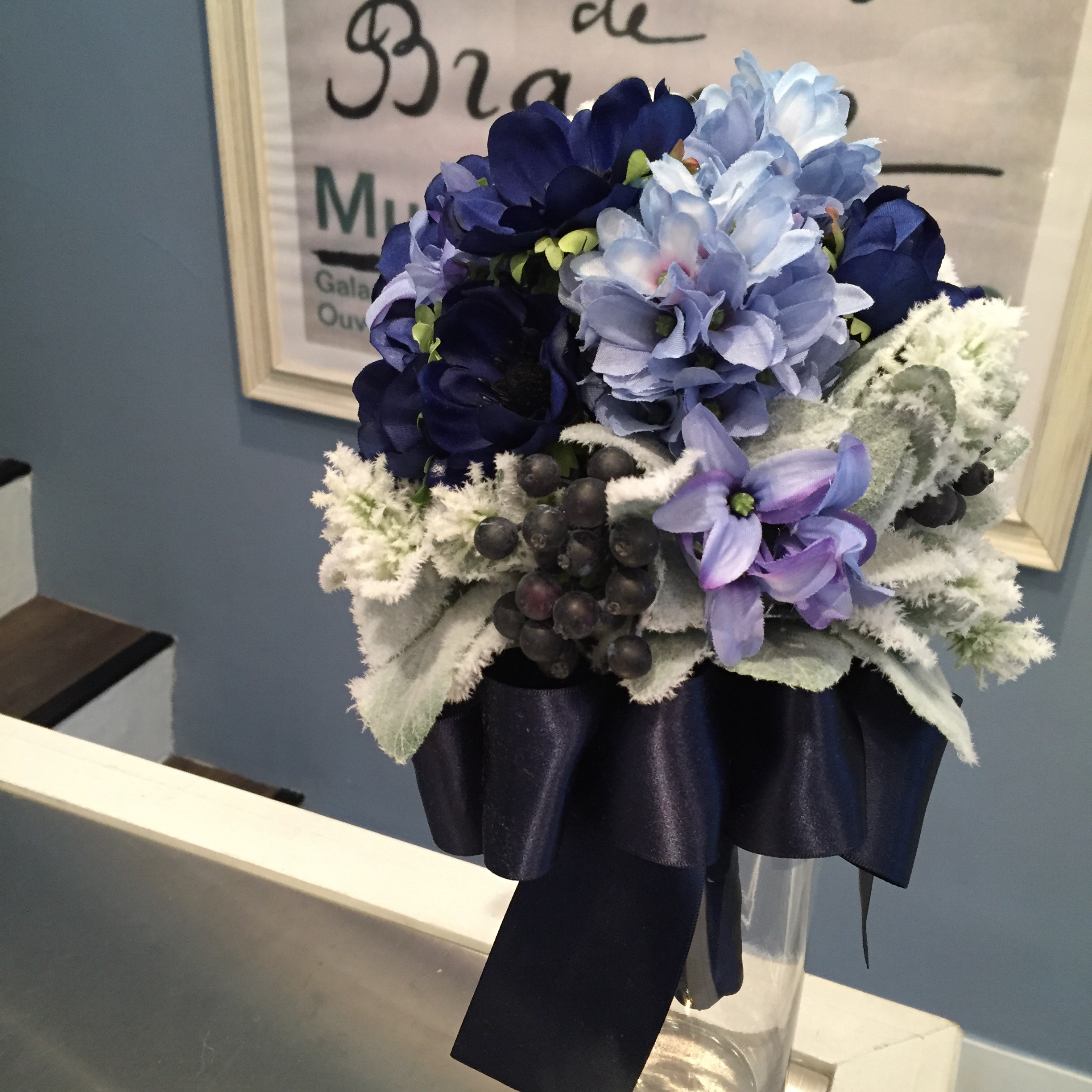 カウンターがあります。こちらで花束やアレンジメントを作ったり、ラッピングをしています。